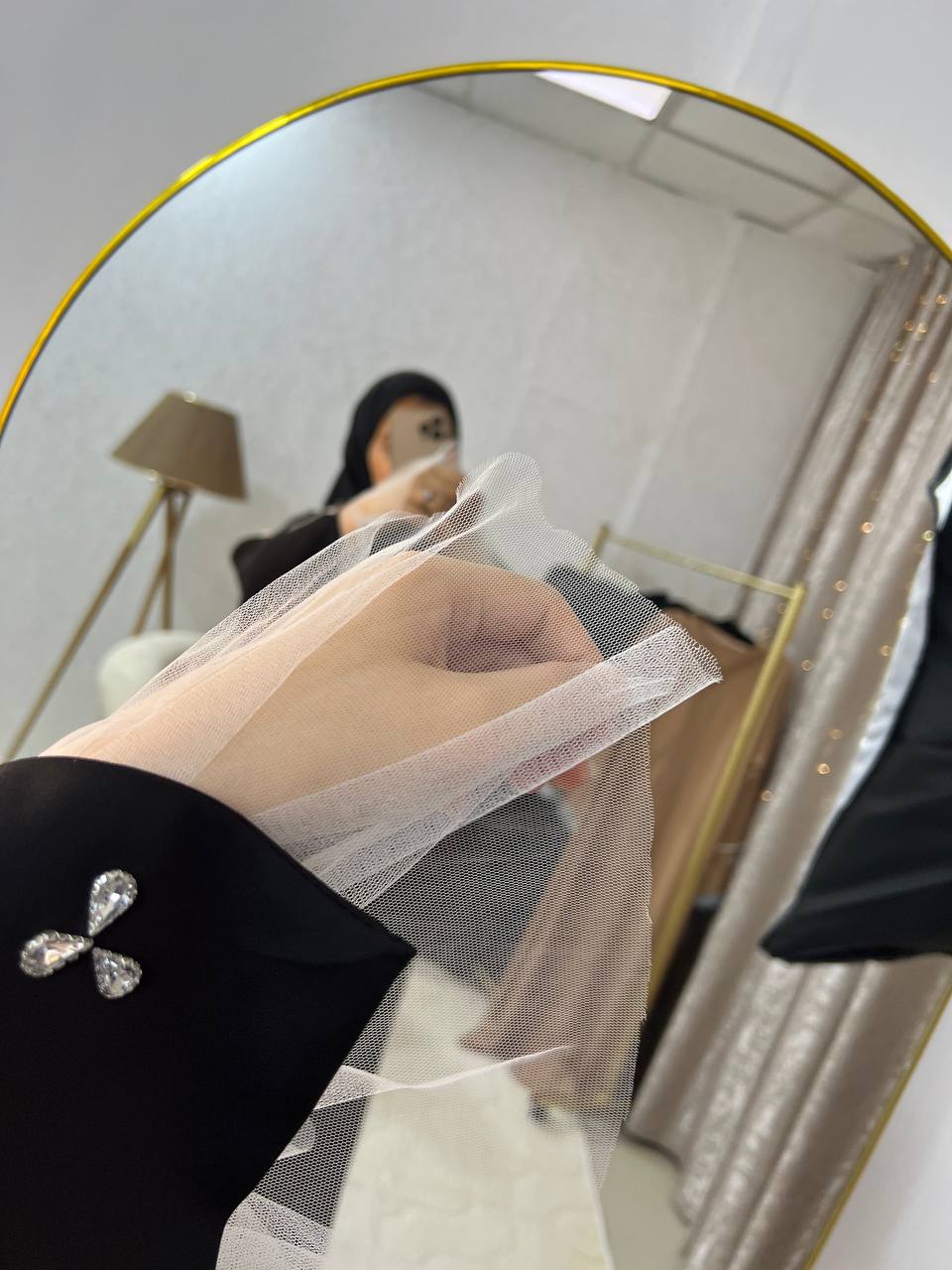 ✨ Détails raffinés : manches ornées de délicates perles et d’un voile léger pour une touche féminine.